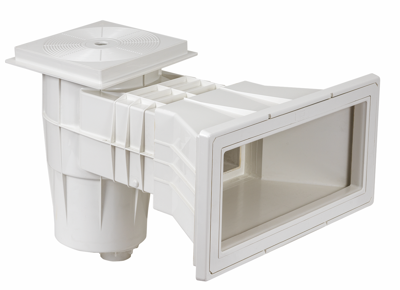 Скиммер Gemas 04212BFW - предназначен для забора воды из бассейна и ее подачи в фильтровальную установку любого типа бассейна. Изготовлен из стойкого к УФ-излучению белого ABS-пластика с шумопоглощающей откидной плавающей заслонкой. Оснащён выходом для регулятора слива и механизмом блокировки корзины против противодавления